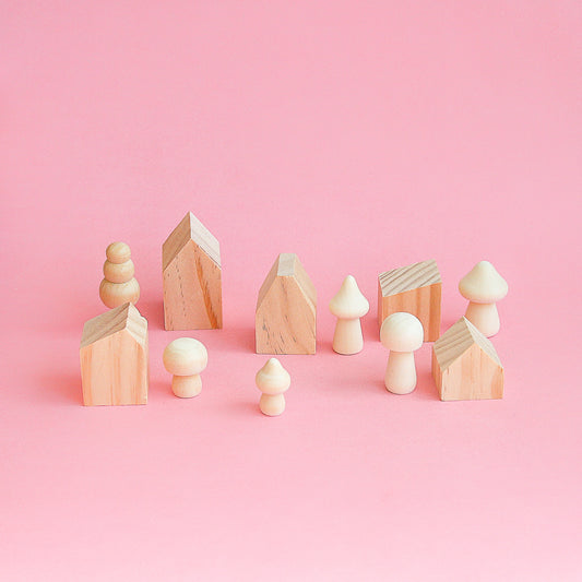 Set de casas de madera a pintar
